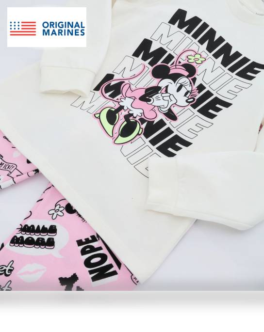 Пижама Original Marines для девочки (7-8 лет (122-128 см)). Уютная теплая пижама для девочек с фантазийным принтом Mickey Mouse. Модель, представленная в двух цветах, состоит из нежного лонгслива с присборенными плечиками и изображением Minnie Mouse и брюк-джоггеров с сатиновым бантиком и all over принтом. Идеальный вариант для подарка. Тема: GOOD NIGHT Состав: 100% хлопок Фельпа — это удивительно комфортная натуральная хлопчатобумажная ткань, гладкая с внешней стороны, мягкая и нежная с внутренней. Одна из самых деликатных и приятных для тела тканей. Такими качествами она обязана особому переплетению нитей полотна при производстве. С изнаночной стороны с помощью петельных протяжек футерные нити прикрепляются к основе полотна, в результате чего образуется своеобразная изнаночная фактурность. Благодаря современным технологиям, эта фактурность часто изготавливается в виде начеса, а лицевая сторона выглядит, как кулирная гладь. Фельпа — ткань воздухопроницаемая, но прекрасно сохраняет тепло, гигиенична, формоустойчива. Хорошо впитывает влагу, но при этом остается гипоаллергенной. Очень долговечная: затяжки, потертости и катышки на изделиях не появляются.. Пижама Original Marines для девочки (7-8 лет (122-128 см))