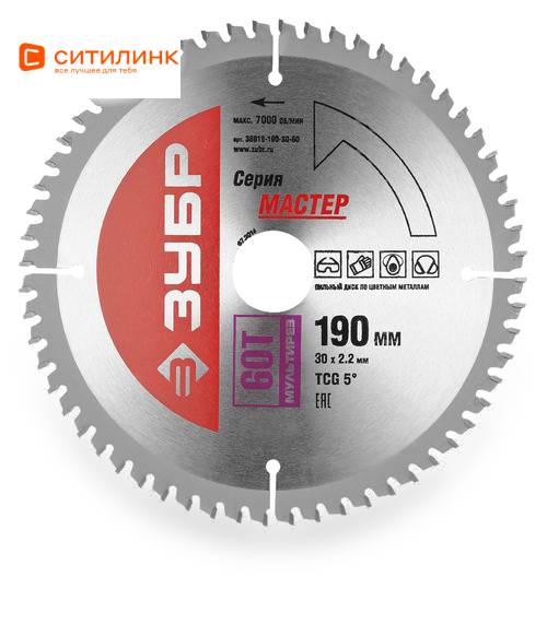 Пильный диск Зубр Точный-МУЛЬТИ рез, по алюминию, 190мм, 1.4мм, 30мм [36916-190-30-60] продается в интернет-магазине Ситилинк