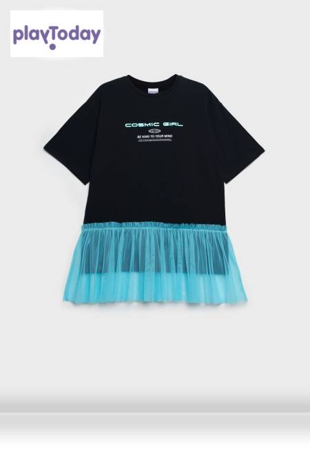 Платье для девочки подростка. Платье оверсайз из качественного и приятного на ощупь трикотажа джерси с высоким содержанием хлопка 95%. Благодаря наличию эластана в составе ткани изделие проще в уходе и держит форму. Декор из сетки Модель выполнена из качественного и приятного на ощупь трикотажа.