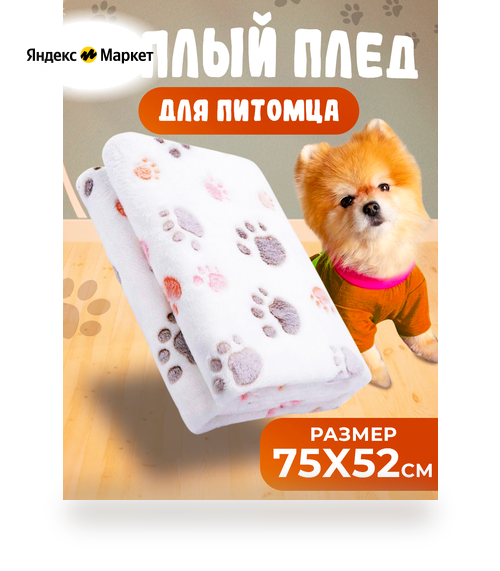 Плед флисовый для животных, цвет белый, размер 75x52 см продается в интернет-магазине Яндекс Маркет