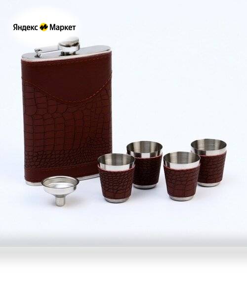 Подарочный набор 6 в 1: фляжка 270 мл, воронка, 4 рюмки, коричневый, 17 х 21 см продается в интернет-магазине Яндекс Маркет