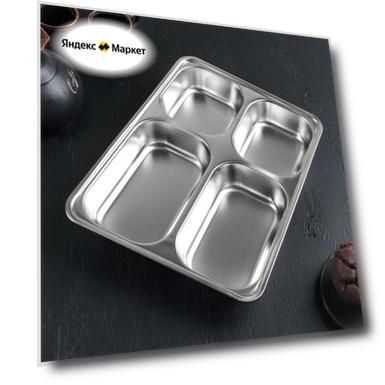 Поднос глубокий из нержавеющей стали, 4 секции, 28×22×4,5 см, 420 мл/280 мл продается в интернет-магазине Яндекс Маркет