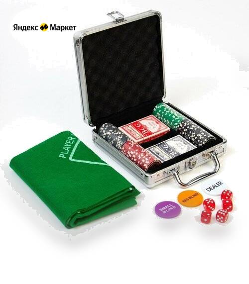 Покер в кейсе (100 фишек, 5 кубиков, 2 колоды карт), с номиналом, вес фишки 3 г, 49 х 25 см продается в интернет-магазине Яндекс Маркет