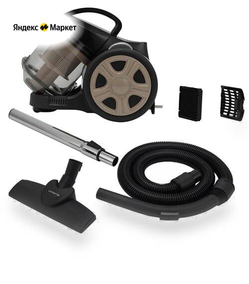 Пылесос циклонного типа. Технология «Циклон». Объем контейнера для пыли – 1,5 л (без мешка для сбора пыли). Телескопическая трубка. Двойная система фильтрации. Автоматическое сматывание шнура. В комплекте: шланг с регулятором воздушного потока, телескопическая трубка, набор насадок. Длина шнура: 4 м.