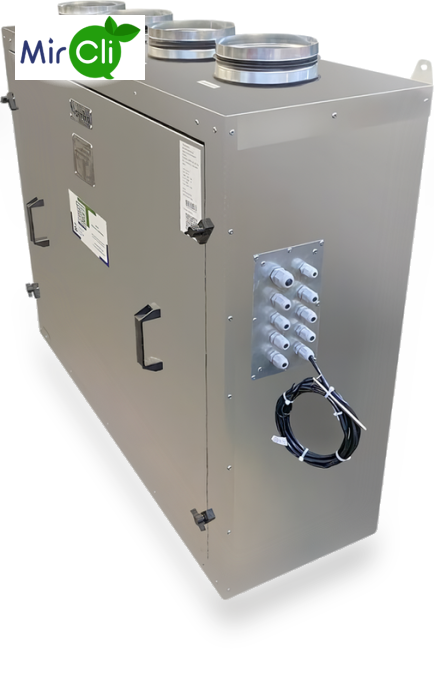 Рекуператор этой установки выполнен в форме шестигранника, что обуславливает увеличение его площади на 30%, и как следствие получить более высокий эффект по сравнению со стандартными четырехгранными рекуператорами. Кроме того, увеличенный пластинчатый рекуперативный блок мембранного типа позволяет снизить расход электроэнергии на дополнительный нагрев воздуха, подаваемого в помещение. Это достигается за счет его способности забирать тепло из удаляемого из помещения воздуха и передачи его подаваемому.