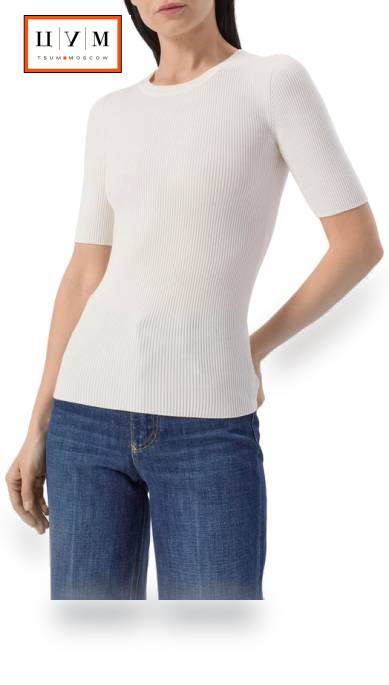 Представленный эксклюзивно в ЦУМе облегающий пуловер в фактурную полоску органично дополнит образ любой степени сложности. Модель с круглым вырезом связали из вискозной пряжи, усиленной полиэстером.
