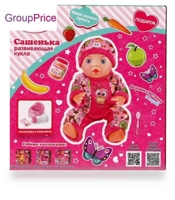 Пупс функциональный КАРАПУЗ Y15BB-DPB-22-RU. Развивающая кукла «Сашенька» ТМ «Карапуз» станет прекрасным подарком для вашей принцессы: - пьет из бутылочки - ходит на горшок - можно купать