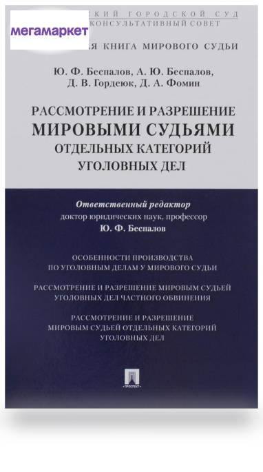 Рассмотрение и Разрешение Мировыми Судьями Отдельных категорий Уголовных Дел продается в интернет-магазине МегаМаркет