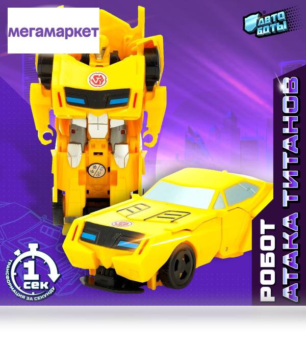 Робот "Спорткар" из линейки "Атака титанов" от Автоботов - это уникальная игрушка, которая сочетает в себе функции робота и трансформера.