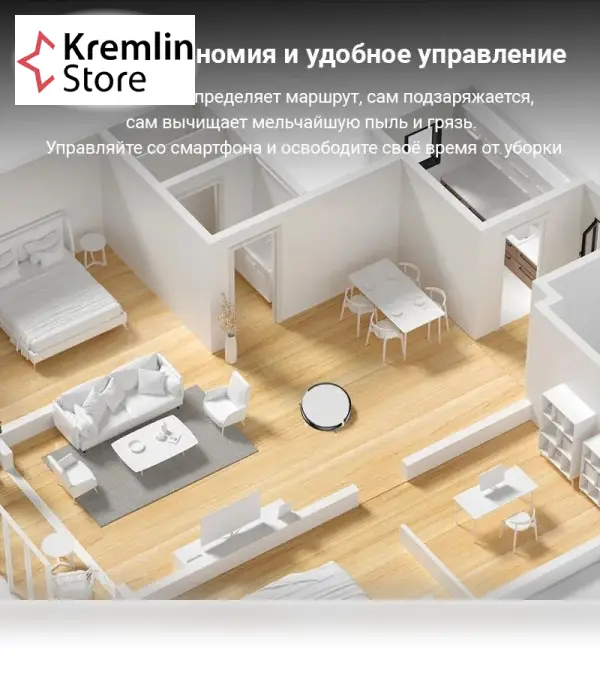 Компактный и стильный дизайн. Робот имеет компактные размеры и стильный белый корпус, который будет гармонично смотреться в любом интерьере. Его можно легко хранить даже в небольшой квартире или офисе, не занимая много места.