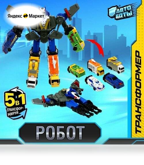 Робот "Воин", трансформируется, собирается из 5 машинок продается в интернет-магазине Яндекс Маркет