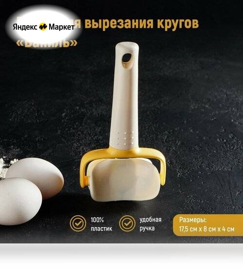 Ролик для вырезания кругов из теста Доляна «Ваниль», d=7 см, 17,5 см продается в интернет-магазине Яндекс Маркет