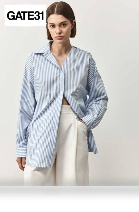 Рубашка Клэр с асимметрией воротника продается в интернет-магазине GATE 31
