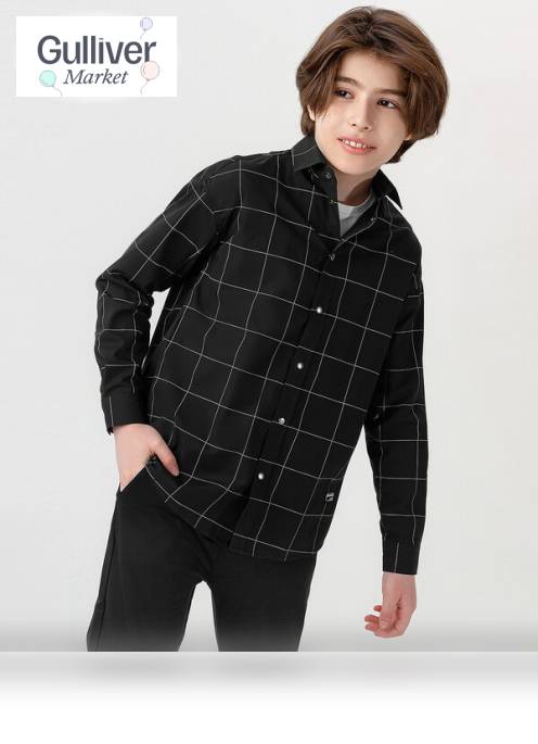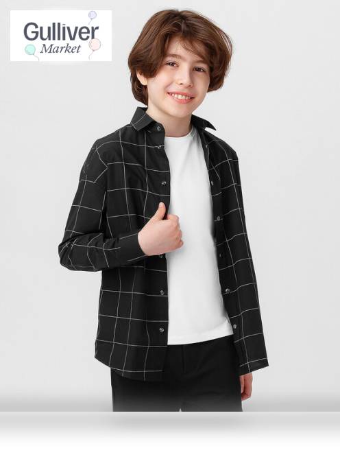 Рубашка с принтом в клетку черная Button Blue продается в интернет-магазине Гулливер Маркет