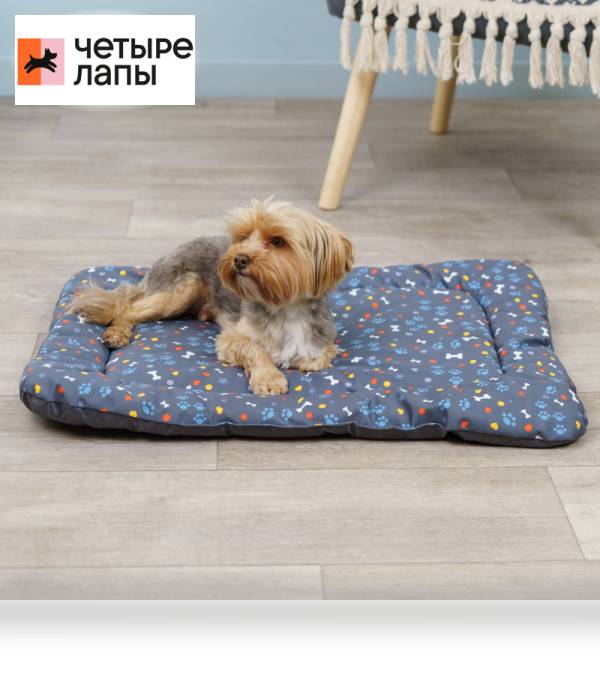 Rurri Матрас для кошек и собак мелких и средних пород Косточки, 63х47х4, серый продается в интернет-магазине Четыре Лапы