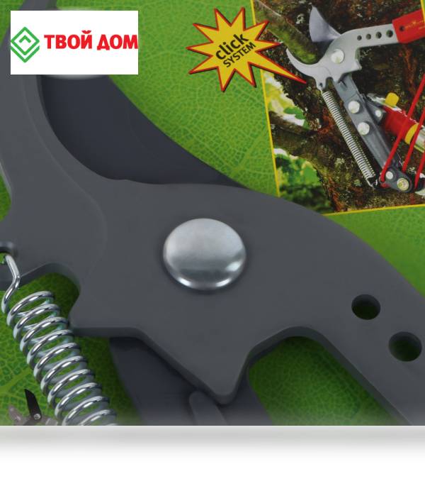 Секатор сучкорез оснащен стальными прямыми лезвиями, которые обеспечивают ровный срез и минимизируют травмы при обрезке растений. Рабочий диаметр сучкореза составляет 45 мм, что позволяет обрабатывать ветки различной толщины.