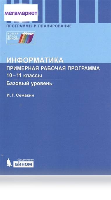 Семакин, Информатика, примерная Рабочая программа, Базовый Уровень, 10-11 кл (Фгос) продается в интернет-магазине МегаМаркетЭксперт: Ринат К., ассистент по интернет-покупкамДата рецензии: 6 октября 2025 годаРекомендация к покупке нейтральная
