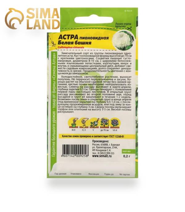 Семена цветов Астра "Белая Башня", Сем. Алт, ц/п, 0,2 г продается в интернет-магазине Сима ЛендЭксперт: Евгений Р., шопинг-консультантДата рецензии: 2 ноября 2025 годаРекомендация к покупке нейтральная