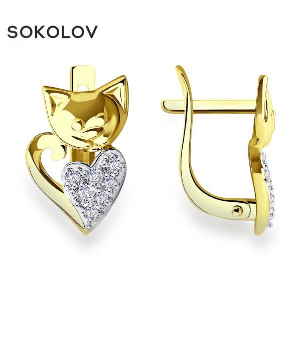 Серьги SOKOLOV из желтого золота с фианитами продается в интернет-магазине SOKOLOV