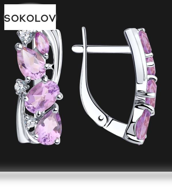 Серьги SOKOLOV из серебра с аметистами и фианитами продается в интернет-магазине SOKOLOV