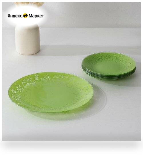 Сервиз столовый «Лара», 7 предметов: d=30 см - 1 шт, d=20 см - 6 шт, цвет салатовый продается в интернет-магазине Яндекс Маркет