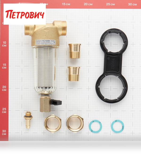 Корпус фильтра изготовлен из латуни, что обеспечивает его прочность и долговечность. Материал фильтрующего элемента - нержавеющая сталь AISI 304, что гарантирует высокую степень очистки воды от механических примесей.