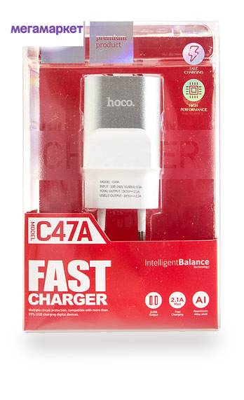 Сетевое зарядное устройство Hoco C47A, 2xUSB, 2,1 A, silver продается в интернет-магазине МегаМаркет