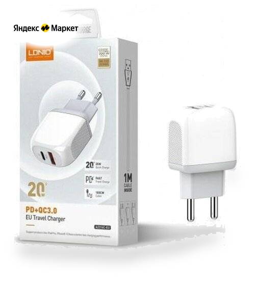 [Аксессуар] HOCO HC-32538 C72Q/ Сетевое ЗУ + Кабель Micro 1m/ QC 3.0/ 1 USB/ Выход: 5V_9V_12V, 18W/ White