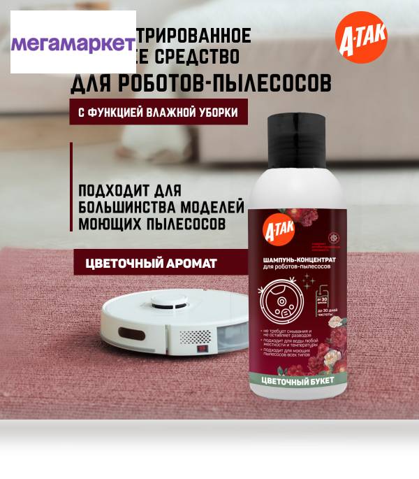 Шампунь для роботов пылесосов А-ТАК цветочный букет, средство для моющих пылесосов, 150 мл atak-robot-floral продается в интернет-магазине МегаМаркет