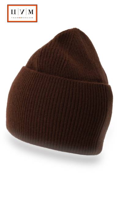 Для изготовления шапки бини использовали ребристый трикотаж на основе шерсти, которую укрепили нейлоном. Гипертрофированно широкий отворот украсили брендированным патчем фирменного алого оттенка.