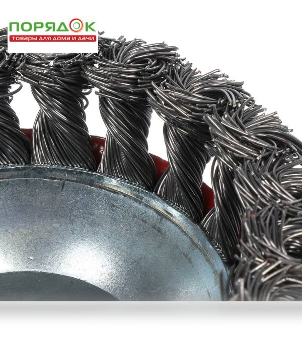 Щетка для УШМ чашеобразная витая, посадка М14. Витая стальная проволока. Применяется для грубой обработки дерева, очистки от старой краски, шлифовки металла, снятия ржавчины, окалины, а так же для обработки сварных швов. Щетка с ворсом из витой или прямой проволоки, используемая для зачистки и затирки различных видов поверхностей. Является эффективным механизмом по обработке металла, а также хорошо подходит для обработки дерева, бетона, пластика, окрашенным и некоторым другим видам поверхностей. В промышленности и быту ее часто применяют для удаления старой краски, ржавчины, коррозийного налета, выравнивания шероховатостей и полировки металлических поверхностей. Достаточно часто используют в качестве альтернативы абразивному кругу. При помощи щетки выравниваются швы металлических изделий, удаляются металлические заусенцы, стачиваются острые края, удаляется сварная окалина или производится обработка, выявляющая и подчеркивающая особенности текстуры поверхности.