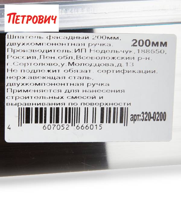 Шпатель фасадный 200 мм с эргономичной ручкой продается в интернет-магазине ПетровичЭксперт: Роман Петров, консультант по маркетплейсамДата рецензии: 3 ноября 2025 годаРекомендация к покупке нейтральная