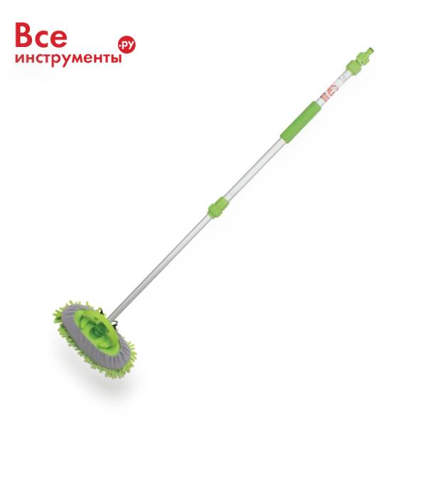 Швабра изготовлена из качественных материалов: ручка выполнена из металла и пластика, что обеспечивает прочность и долговечность изделия. Насадка из микрофибры обладает отличными впитывающими свойствами, что позволяет быстро и эффективно удалять загрязнения с различных поверхностей.