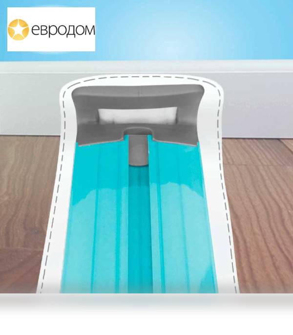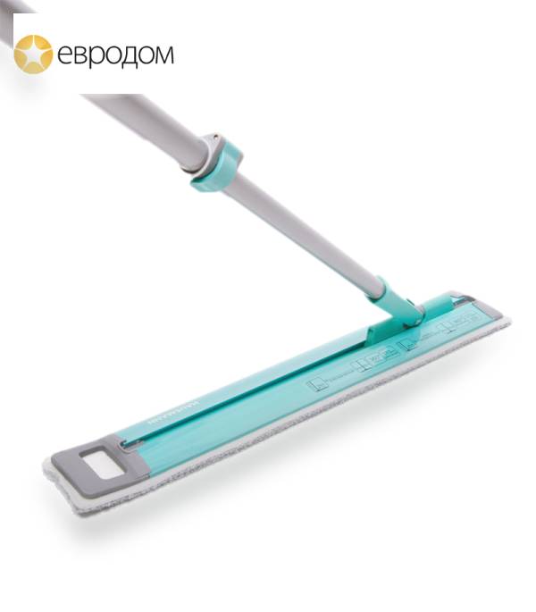 Гибкий элемент и эластичного пластика на платформе швабры особенно эффективен для одновременной уборки пола и плинтуса.