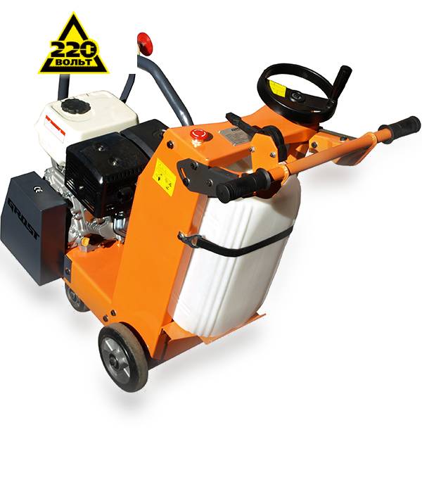Улучшенная модель швонарезчика GROST FS5016C с задним расположением бака для воды имеет максимальный диаметр диска 500 мм, центр тяжести расположен так, что обеспечивается максимальная эффективность при резке, качество узлов улучшено, и скорость вращения диска при резке постоянна. Плавно регулируемая глубина нарезаемого шва вращением штурвала. Наличие вместительного бака для воды позволяет обходиться без постоянного источника проточной воды. Возможность быстрой замены режущего диска благодаря легкому подъему кожуха. Надежный бензиновый двигатель, оснащенный датчиком масла. Штифт, фиксирующий алмазный диск. Простота в эксплуатации Этот компактный швонарезчик оснащен мощным двигателем GROST GX390 и способен нарезать швы глубиной до 160 мм. Применение В строительстве, ремонте и реконструкции дорог и мостов, при производстве бетонных полов, для создания деформационных швов, для резки железобетонных покрытий, для создания глубоких штроб и обрезки готовых бетонных деталей.