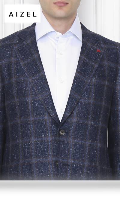 Сине-коричневый пиджак из шерсти с узором клетка продается в интернет-магазине AizelЭксперт: Роман Петров, консультант по маркетплейсамДата рецензии: 25 октября 2025 годаРекомендация к покупке нейтральная
