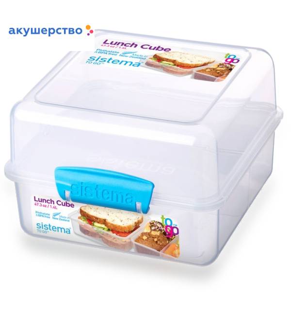 Sistema To-Go Контейнер двухуровневый 1,4 л Практичное решение для перекуса вне дома – удобно брать с собой. Вместительный – двухуровневый контейнер. Особенности: Нижнюю секцию с разделителем удобно использовать для сладостей и фруктов. Верхняя подходит для бутербродов и сэндвичей. Подходит для использования в холодильнике и морозильной камере. Можно использовать в микроволновой печи без крышки. Сохраняет свежесть продуктов – силиконовый уплотнитель. Плотное закрытие – фирменные защелки Sistema. Легко моется – можно мыть в посудомоечной машине. Безопасный – не содержит бисфенол А и фталаты. Разработано и произведено в Новой Зеландии.