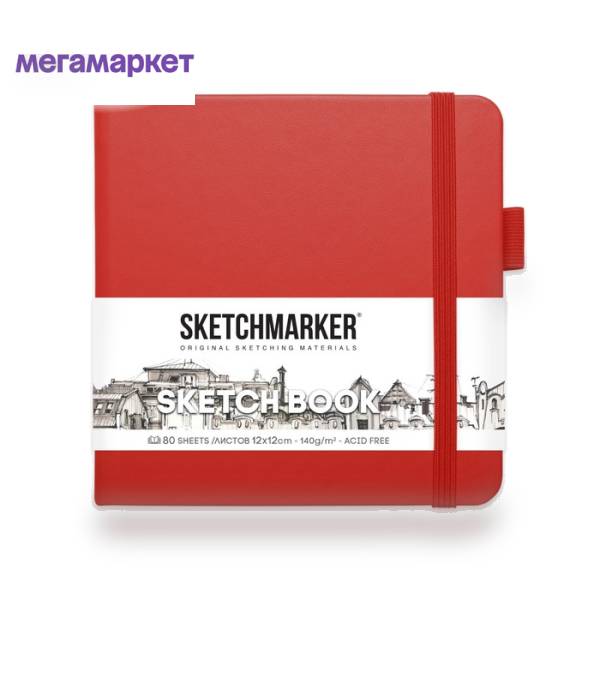 Скетчбук Sketchmarker, 120 х 120 мм, 80 листов, красный, блок 140 г/м2 продается в интернет-магазине МегаМаркет