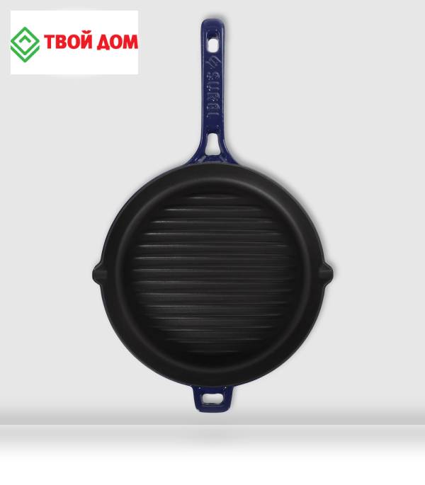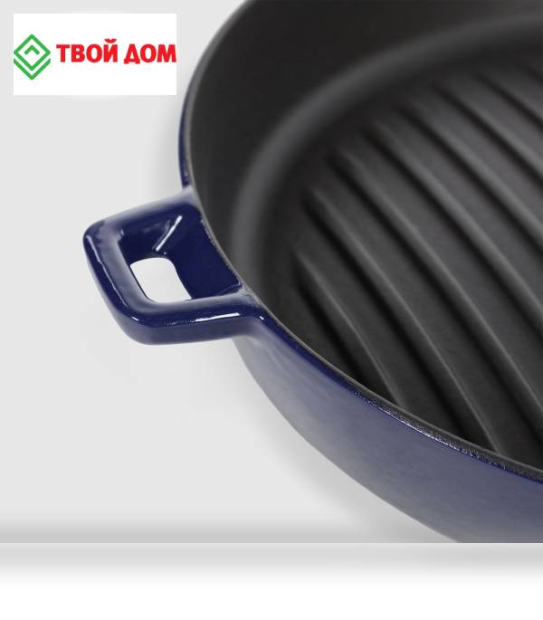 Сковорода выполнена из чугуна. Данный материл универсален и подходит для всех видов плит, кроме того, чугун не выделяет вредных веществ при готовке и абсолютно безопасен для здоровья человека. Вместе с тем, посуда из чугуна прочна и долговечна, поэтому будет радовать Вас и Ваших близких долгие годы! А стильный изящный дизайн превосходно украсит Ваше пространство.