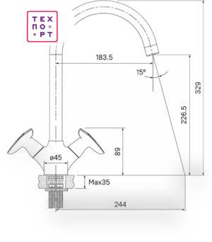 Смеситель оснащен поворотным изливом, что обеспечивает удобство использования. Рычаг управления позволяет легко регулировать температуру и напор воды. Высокое качество материалов гарантирует долговечность и надежность изделия.