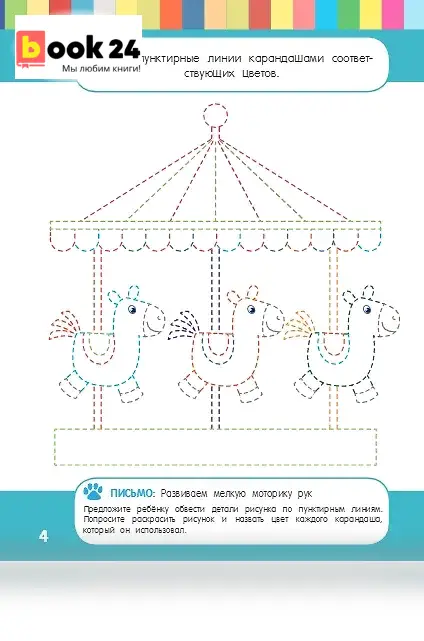 Основная задача пособия — повысить уровень IQ малыша, расширить его познавательные способности и кругозор в процессе весёлой увлекательной игры. Путешествуя по страницам книги, малыш будет радоваться, узнавая знакомые рисунки, и с удовольствием рассматривать новые; познакомится с основными цветами; научится различать времена года; находить сходства и отличия; дорисовывать недостающие элементы, а также сможет развить внимание, память, воображение и речь. Пальчиковая гимнастика с занимательными стихотворениями доставит малышу удовольствие и поможет развить мелкую моторику, а тщательно подобранные яркие иллюстрации будут стимулировать интерес ребенка к занятиям. Кроме того, внизу каждой страницы имеются подсказки для взрослых, которые помогут провести занятие максимально эффективно. Предназначено родителям малышей 1-2 лет, воспитателям ДОУ, педагогов.