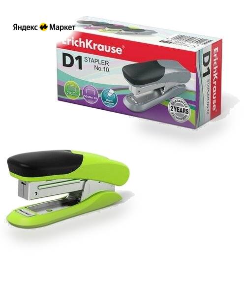 Степлер ErichKrause D1 № 10, до 20 листов, встроенный антистеплер, микс продается в интернет-магазине Яндекс МаркетЭксперт: Наталья Перова, онлайн-шопинг-гидДата рецензии: 10 ноября 2025 годаРекомендация к покупке нейтральная