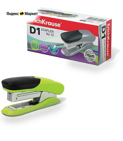 Степлер ErichKrause D1 № 10, до 20 листов, встроенный антистеплер, микс продается в интернет-магазине Яндекс Маркет