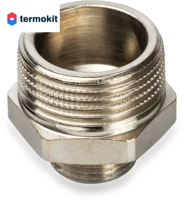 На наружной резьбе есть насечки, которые обеспечивают лучшее сцепление с уплотнительным материалом при монтаже фитингов. Для удобства монтажа фитинги имеют концевые бурты (реборды).