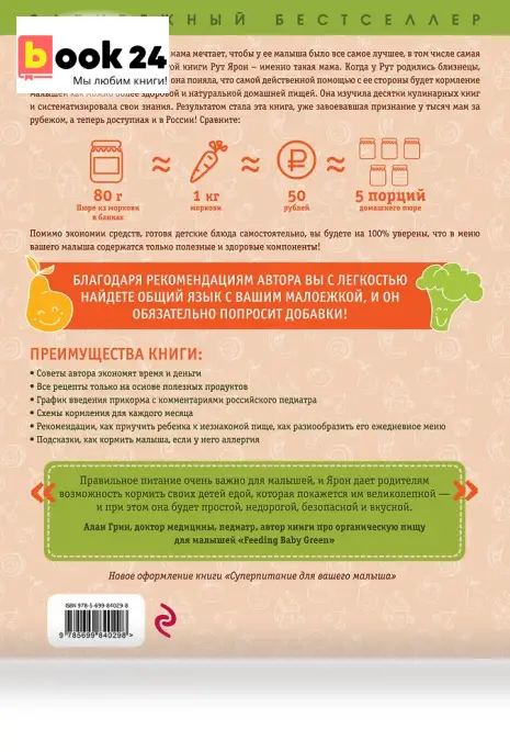 Суперпитание для вашего малыша. (ISBN 978-5-699-76429-7, новая обложка: "Мамина еда. Вкусные и полезные рецепты для самых привередливых малоежек") продается в интернет-магазине Book24
