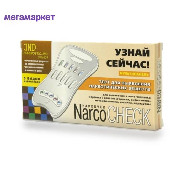 Тест Наркочек на выявение 5 видов наркотиков в моче продается в интернет-магазине МегаМаркет