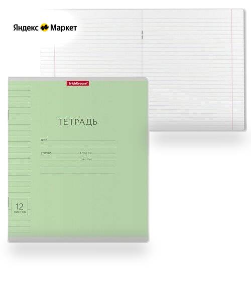 Тетрадь 12 листов в линейку "Классика с линовкой", обложка мелованный картон, блок офсет, зелёная продается в интернет-магазине Яндекс Маркет