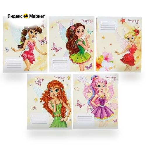 Тетрадь 18 листов в клетку Calligrata "Феи", обложка мелованный картон, блок офсет, белизна 95%, микс продается в интернет-магазине Яндекс Маркет