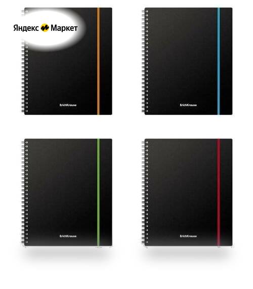 Тетрадь А5, 80 листов в клетку на гребне ErichKrause "Accent", пластиковая обложка на резинке, блок офсет, белизна 100%, микс продается в интернет-магазине Яндекс Маркет