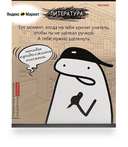 Тетрадь предметная 48 листов в линию Школьные мемасики "Литература", обложка мелованный картон, тиснение холст, блок офсет продается в интернет-магазине Яндекс Маркет